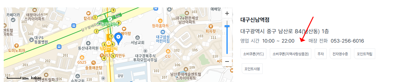 - 대표번호(1522)면 직영점, 지역번호면 가맹점 가능성